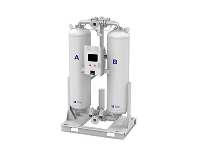 Regeneration process:This series of dryer uses a high-pressure blower to blow ambient air (as regenera-tion airflow)into the heating cylinder of the heater andflow through the adsorbent that needs to be desorbed.Using the principle of adsorbent desorption at hightemperature,the water is carried out of the adsorptioncylinder and discharged into the atmosphere